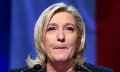 FacebookTwitterPinterest 'Le Pen criticó a Hollande, a quien describió como un moderado' vice-canciller de Alemania ', después de haber denunciado el populismo en un discurso.' Fotografía: Philippe Wojazer / AFP / Getty Images