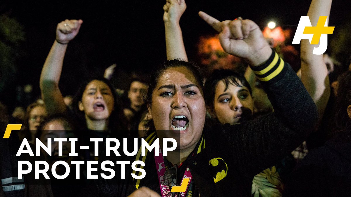 "F * ck Donald Trump!"Las personas han salido a las calles para protestar por la victoria de Trump en la elección. Pic.twitter.com/v2fKVthY9v- AJ + (@ajplus) 9 de noviembre de, el año 2016