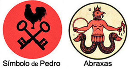Il simbolo più importante dello Gnosticismo è Abraxas, il demiurgo, molto utilizzato in alchimia e nella Massoneria. E’ un essere metà serpente e metà gallo (...sempre la stessa mescolanza tra uccello e rettile).