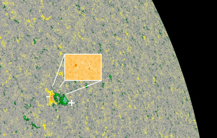 UNA PROTO-MANCHA SOLAR DEL CICLO SOLAR 25: Una proto-mancha solar está creciendo en el hemisferio norte del sol. Su polaridad magnética lo marca como miembro del nuevo ciclo solar 25. El punto de crecimiento aún no es lo suficientemente grande como para recibir un número oficial y podría disiparse antes de elevar el número diario de manchas solares por encima de cero. Alertas de manchas solares: texto SMS .